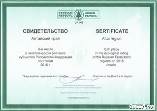 Свидетельство по данному поводу на днях получили Главного управление природных ресурсов и экологии Алтайского края.