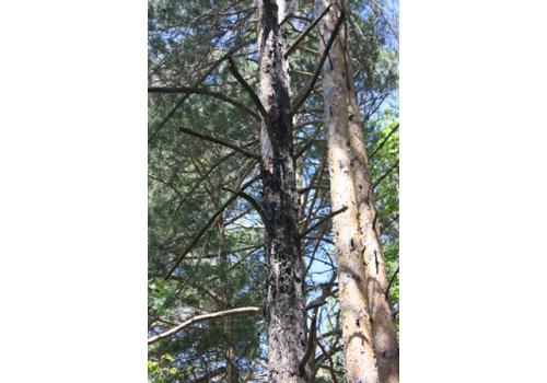 На фото: сосна, пострадавшая от грозовых разрядов.