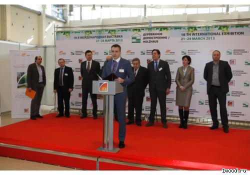 Сегодня, 21 марта, в Москве начала свою работу 18-я Международная выставка «Деревянное домостроение / Holzhaus». Торжественная церемония открытия состоялась в 12:00 на сцене в залe В павильона № 75 ВВЦ.