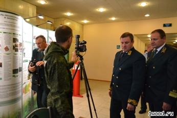 Перед началом совещания заместитель Министра природных ресурсов и экологии Российской Федерации - руководитель Федерального агентства лесного хозяйства Иван Владимирович Валентик ознакомился с выставкой, представленной подведомственными Рослесхозу организациями.