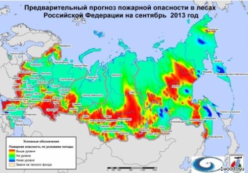 Гидрометцентр России совместно с Авиалесоохраной разработали долгосрочный прогноз рисков чрезвычайных ситуаций, связанных с природными пожарами, на сентябрь 2013 года. Заключение экспертов основано на фактических данных гидрометеорологической обстановки за август, данных долгосрочного прогноза температуры и осадков Росгидромета на сентябрь 2013 года и результатах многомерного корреляционного анализа.