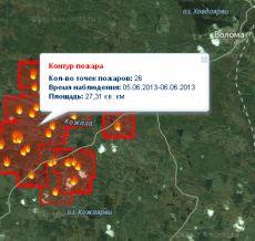 Космические спутники на протяжении нескольких дней фиксируют крупный лесной пожар в восьми километрах от поселка Волома Муезерского района. По данным информационного сервиса оперативного мониторинга природных пожаров «Космоснимки – Пожары», общая площадь возгорания на этом участке лесного фонда превысила 2,7 тысячи гектаров. В ходе наблюдений 5-6 июня вблизи Воломы были зарегистрированы 26 точек пожаров. Это одна из самых горячих зон на территории России.