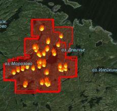 Между тем, как свидетельствуют космические снимки, лесной пожар на побережье Белого моря в Лоухском районе разрастается. По последним наблюдениям, количество точек пожара выросло до 27, а его зона оценивается более чем в 1,8 тысячи гектаров. Огонь приближается к морскому побережью, где находятся особо ценные лесные участки.