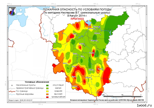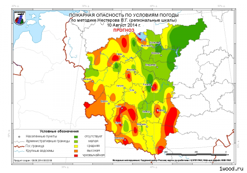 По прогнозам специалистов ФБУ "Авиалесоохрана" высокая, местами чрезвычайная пожарная опасность в лесах по условиям погоды, когда пожары возникают от малейшего источника огня (незатушенная сигарета, спичка, костер), быстро распространяются и создают дополнительные очаги ожидается в предстоящие выходные дни (9-10 августа 2014 года) на территории Московской, Тверской, Ярославской, Рязанской, Курской, Орловской, Белгородской, Воронежской, Тамбовской, Брянской, Смоленской, Калужской, Тульской, Липецкой областей.