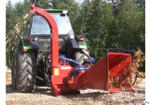 Назначение рубительной машины - утилизация древесных отходов от лесозаготовки. Рубительная машина имеет привод от трактора и направляющий бункер (гидравлический питатель) для подачи материала к ножам с гидроприводным роликом. Макс. диаметр перерубаемого материала утилизации - 180 мм.