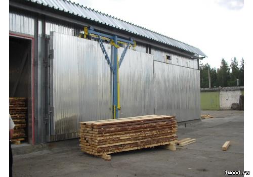 Сборные сушильные камеры СКК собираются на месте установки из сэндвич-панелей, монтируемые на сборном металлическом каркасе. Ограждения сушильной камеры, выполненные из каркасных трехслойных сэндвич-панелей, с заполнением плитами жесткого пенополистирола и обладают высокими теплоизоляционными характеристиками, так как металлические конструкции внутри камеры не сообщаются напрямую с внешней средой. В сушильных камерах установлены высокоэффективные осевые (при необходимости реверсивные) вентиляторы собственного производства с лопастями из алюминиевых сплавов или ударопрочного полиамида. Вентиляторы разработаны специально для работы в среде с повышенной влажностью и температурой, с электродвигателями во взрывозащищенном исполнении. Сушильные камеры оснащены воздушными клапанами приточно-вытяжной вентиляции (с электрическим приводом) для осуществления воздухообмена. Загрузка пиломатериала производится погрузчиком через съемно-откатную дверь, снабженную механизмом подъема и отката (для камер на 15куб.м. ворота выполняются распашными), либо на трековых тележках, в случае продольной схемы загрузки камеры. Снаружи камера обшивается оцинкованным профилированным настилом, изнутри облицовывается корозионостойким листом из алюминиевого сплава.