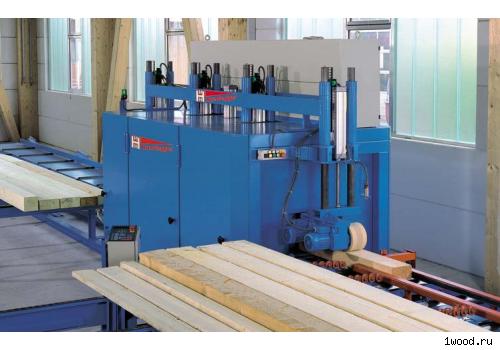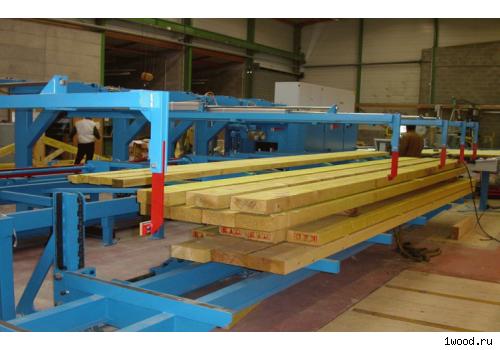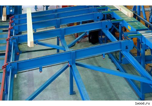 Благодаря оснащению подъемным столом и механизмом для разборки штабеля можно в автоматическом режиме строгать целые пакеты. Пакет приподнимается, и пиломатериал по частям транспортируется от подъемного механизма на загрузочный поперечный транспортер.