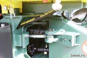 Плавно работающее сервоуправление (гидронасос SAUER DANFOSS) поворотом одной части шарнирной рамы относительно другой вокруг соединяющего их вертикального шарнира с помощью двух гидравлических цилиндров. Оснащенное системой аварийного управления. Проходимость склонов – по горизонтали ± 35%, при подъеме 35 %.