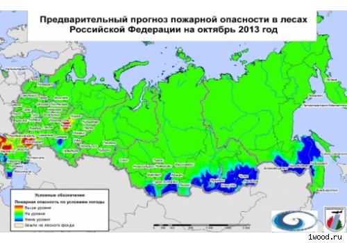 «Авиалесоохрана» подготовила долгосрочный прогноз пожарной опасности в лесах России на октябрь 2013 года. Расчеты основываются на фактических данных гидрометеорологической обстановки за сентябрь, прогнозе температуры и осадков Росгидромета и результатах многомерного корреляционного анализа, сообщает пресс-служба учреждения. Согласно выводам экспертов, большая вероятность превышения среднемноголетних значений ожидается на территории Ростовской, Волгоградской и Кировской областей, в республиках Татарстан, Адыгея и Карачаево-Черкессия.