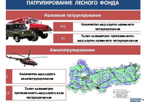 В целях оперативного выявления и тушения лесных пожаров осуществлялось наземное патрулирование лесного фонда по 972 маршрутам протяженностью 37 тыс. км, а также авиапатрулирование по 5 маршрутам протяженностью 3,3 тыс.км.