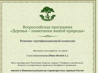 Такое решение приняла сертификационная комиссия Совета по сохранению природного наследия нации в Совете Федерации РФ по Сосне обыкновенной (Pinus silvestris L.), которая произрастает в квартале 37 Раифского леса Волжско-Камского государственного природного биосферного заповедника.