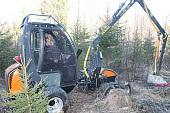 По словам начальника отдела организации планирования и ведения лесного хозяйства «ЛХК «Кареллеспром» Алексея Нога, который также принял участие во встрече, мини-харвестеры финской компании «Usewood», помимо прочего, производят рубки ухода в молодняках, прочистки и осветление культур. При относительно небольшом расходе топлива продуктивность лесных машин составляет около 1,5 га в час, что, разумеется, превышает скорость работы лесозаготовителя с кусторезом. Среди преимуществ мини-харвестера, вес которого около 2 тонн, а ширина – 1,6 метра, отмечается возможность работать в темное время суток, в период распутицы и в снегу глубиной до 20 см, а также легкость транспортировки с одного рабочего участка на другой.